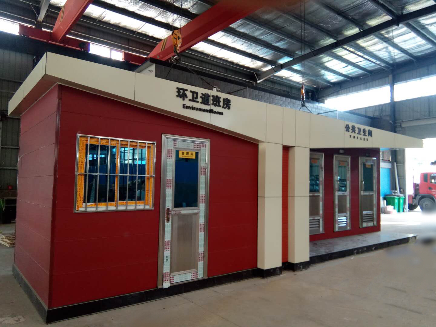 1、房體結(jié)構(gòu): 采用輕鋼龍骨結(jié)構(gòu),鋼材全部使用國家標(biāo)準(zhǔn)鍍鋅鋼材。根據(jù)房體的大小特選用國標(biāo)方管(50-100)焊接而成。鍍鋅管厚度為2.8mm,方管經(jīng)過除銹后進(jìn)行鍍鋅、防腐處理。這樣就會(huì)延長(zhǎng)廁所使用壽命。